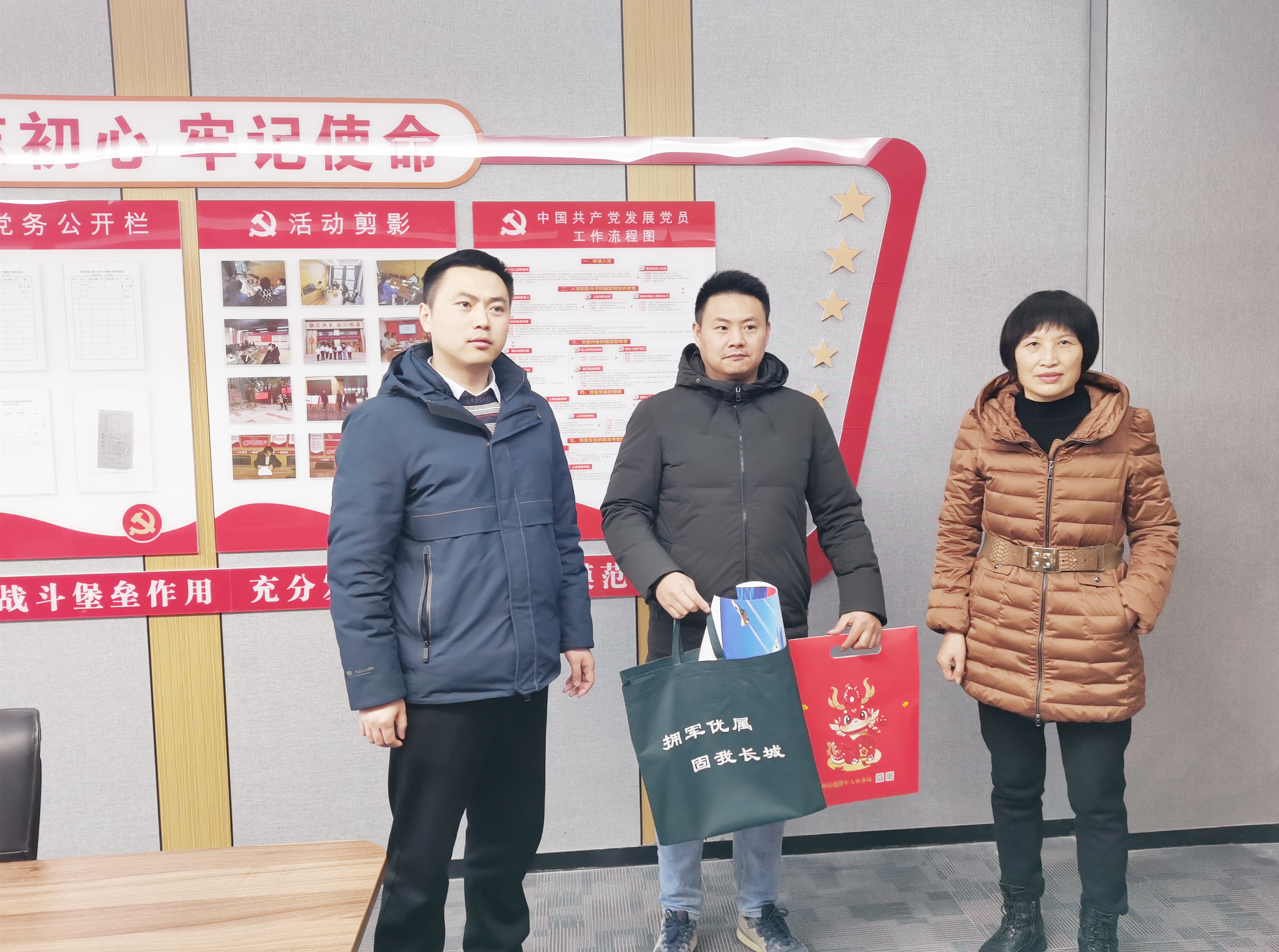 在中華傳統(tǒng)節(jié)日春節(jié)來臨之際,為了表達對退役軍人的關(guān)心關(guān)愛,近日,市擔(dān)保集團黨委委員、副總經(jīng)理何宇帶隊走訪慰問集團及子公司退役軍人,為退役軍人送上祝福并送去慰問品。集團子公司董事長許如花隨同慰問。