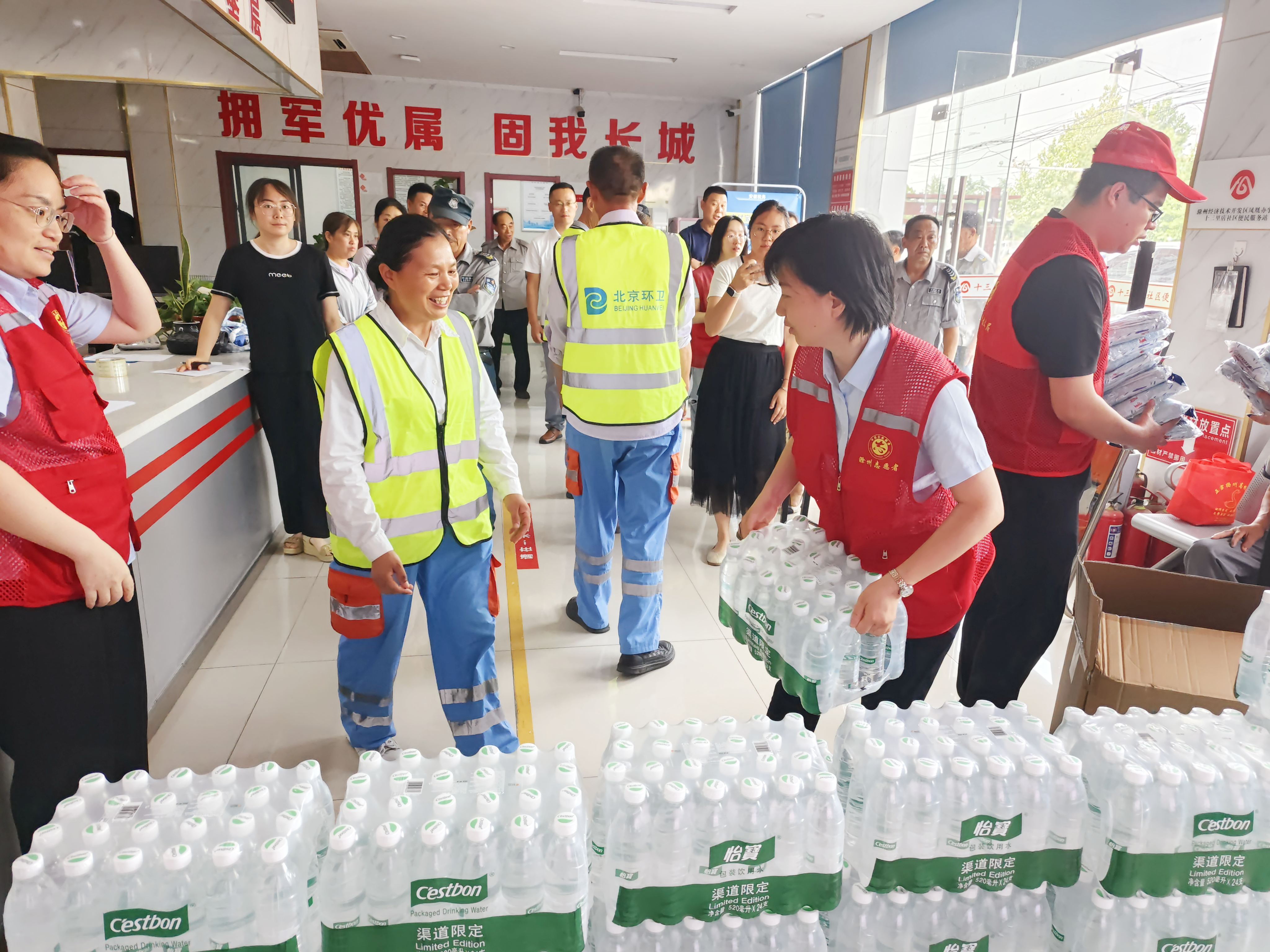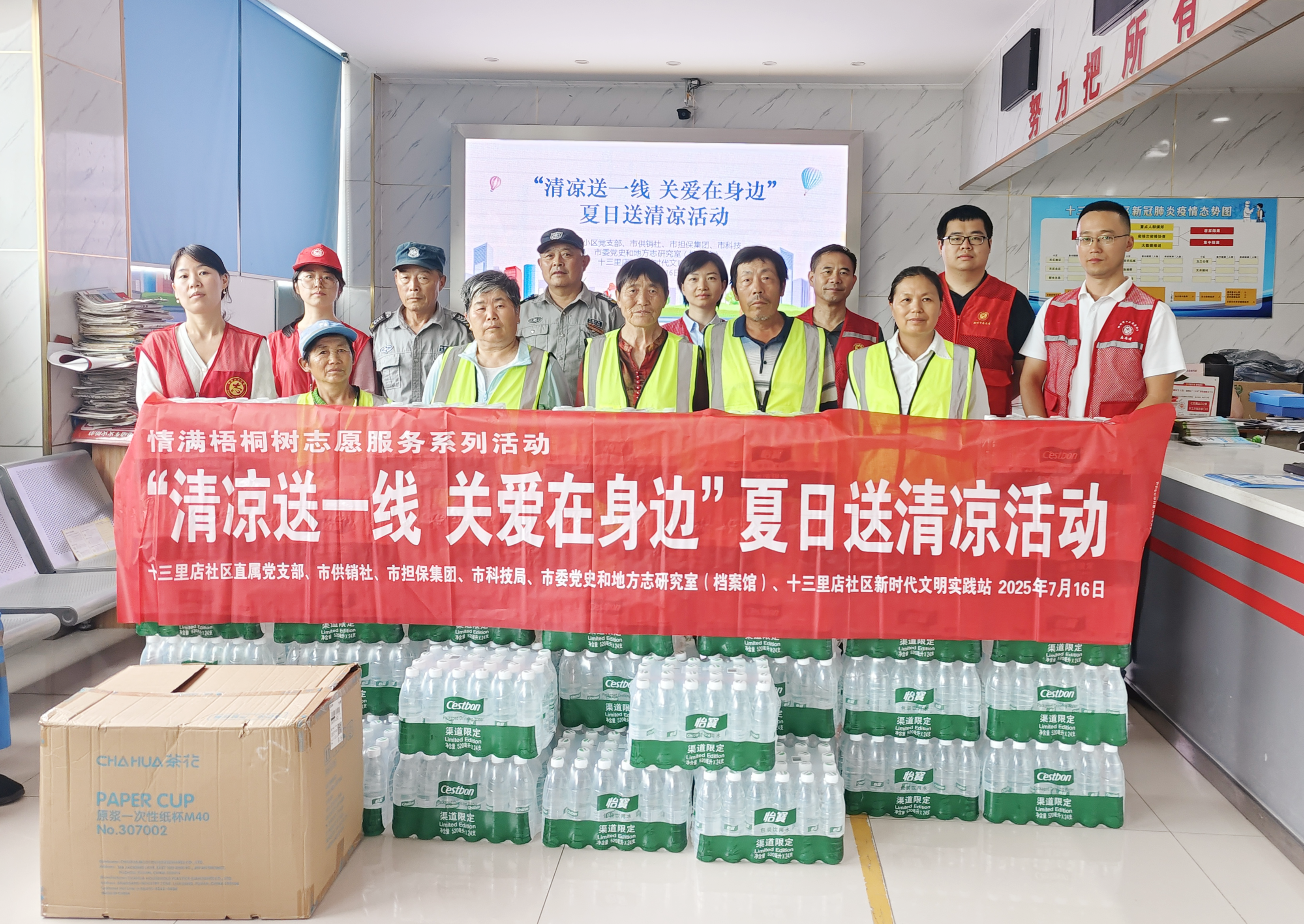 入夏以來,持續(xù)高溫炙烤大地,給戶外作業(yè)的環(huán)衛(wèi)工人帶來了嚴(yán)峻“烤”驗(yàn)。為給炎炎夏日里高溫下作業(yè)的社區(qū)環(huán)衛(wèi)工人們送去一絲清涼和關(guān)愛,7月16日,市擔(dān)保集團(tuán)三個(gè)黨支部聯(lián)合共建單位的黨組織,共同開展“清涼送一線 關(guān)愛在身邊”黨員志愿服務(wù)活動(dòng),為共建的十三里店社區(qū)全體環(huán)衛(wèi)工人送去黨組織的關(guān)懷與問候。